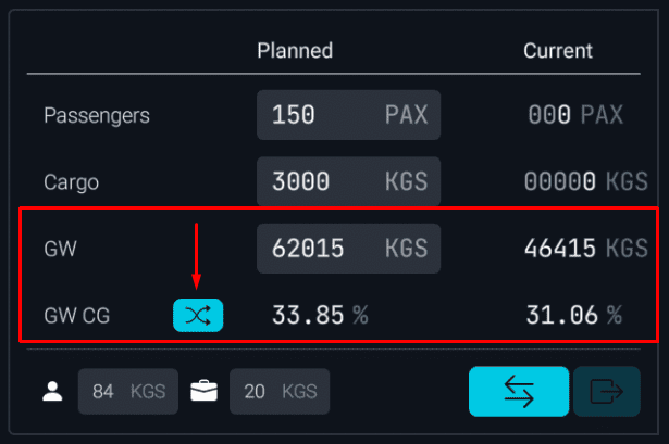After planning your cargo and passengers or using the simBrief import function, you can add additional cargo by modifying the calculated cargo value.