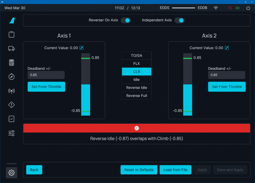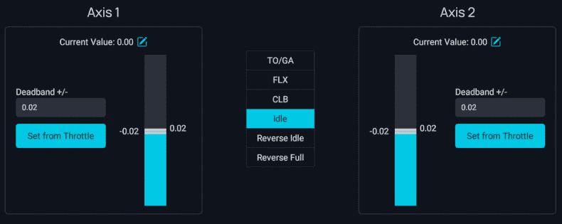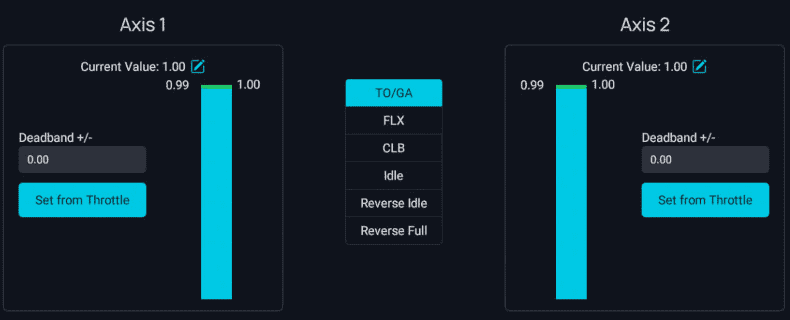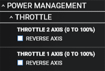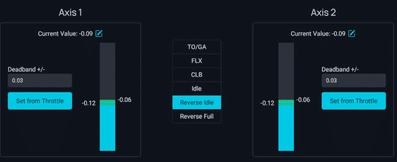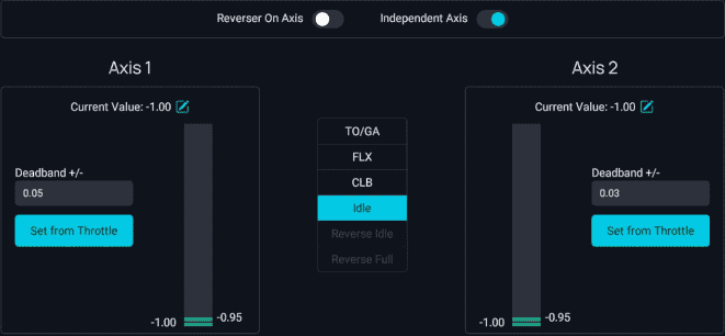 Set Reverser on Axis to OFF if your throttle does not have a range for the reverser thrust (lowest setting is idle).