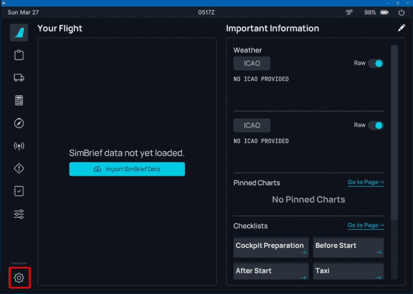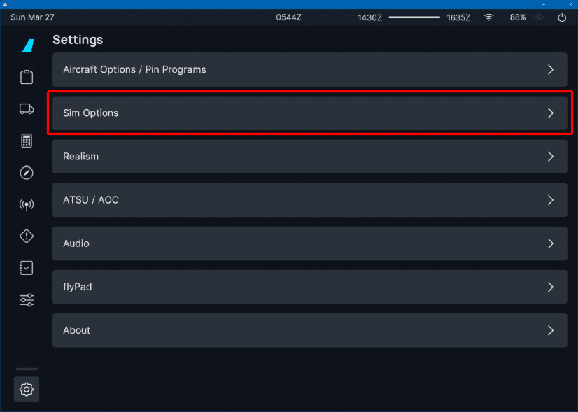 Sim Options EFB-Calibrate