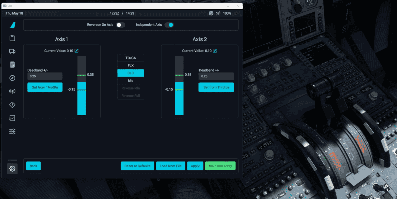 The throttle in the cockpit should now move in the correct direction. If not, check the Reverse Axis box here: