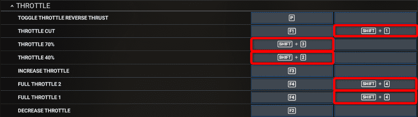 • Ctrl+F3: Increase throttle by 1/40th