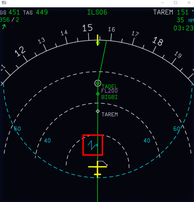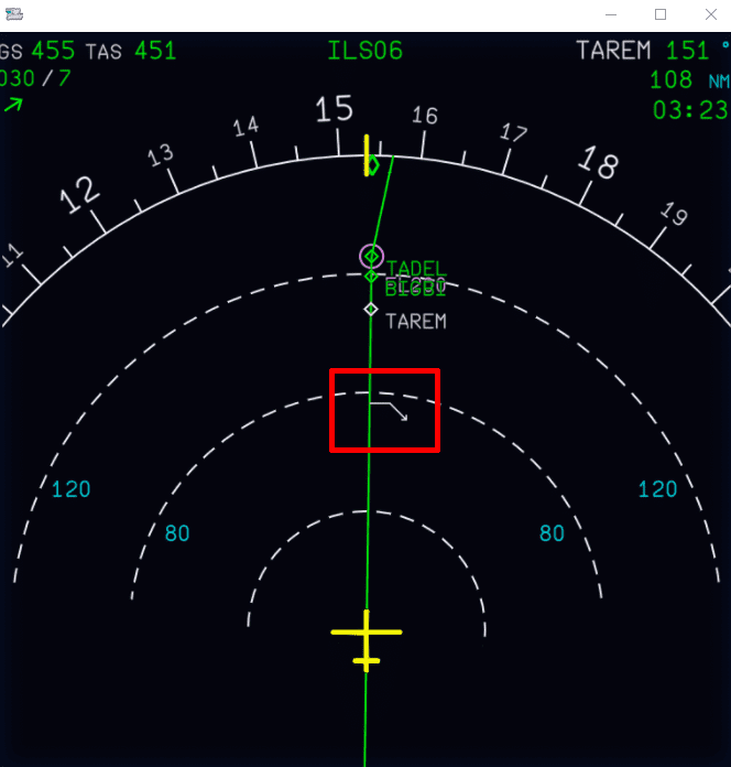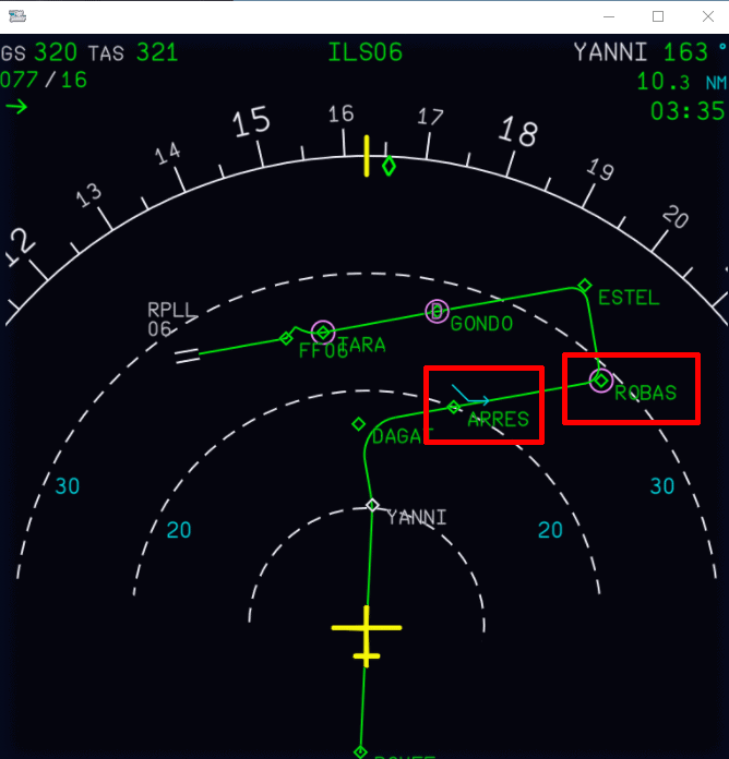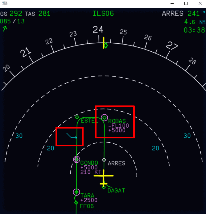 As we continue along the flight path and pass all speed restrictions again, we can see a couple of familiar indicators on the ND.
