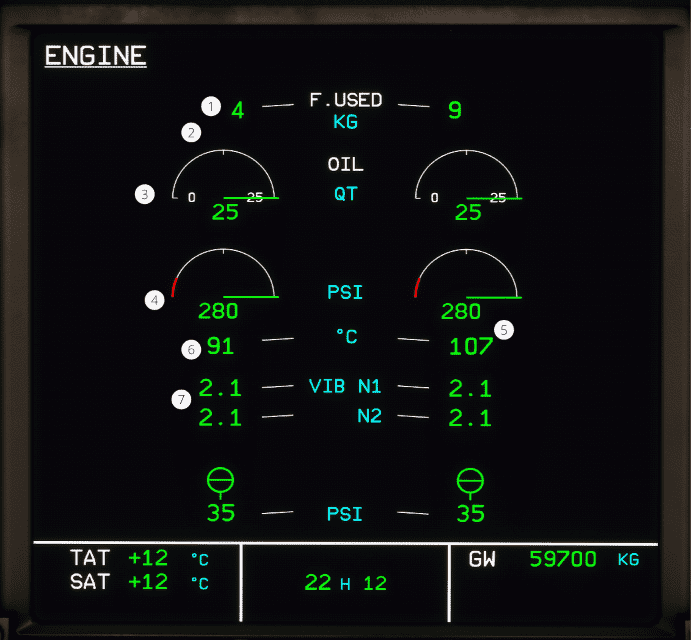 | 7 | N1 and N2 vibrations | Green number | The vibration of the low-pressure and high-pressure rotor is within normal operating range. |