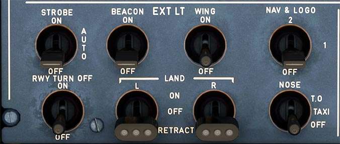 Landing light switches for left and right under wing landing light.