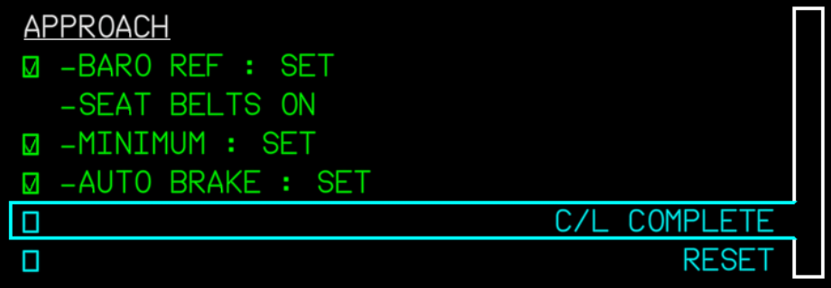 You can navigate through the checklist by using the UP and DOWN buttons on the ECP. You can check/uncheck items
