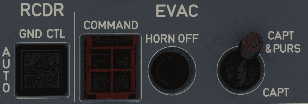 - The Flight Crew orders an evacuation, regardless of the CAPT and PURS sw position (CAPT or CAPT & PURS).